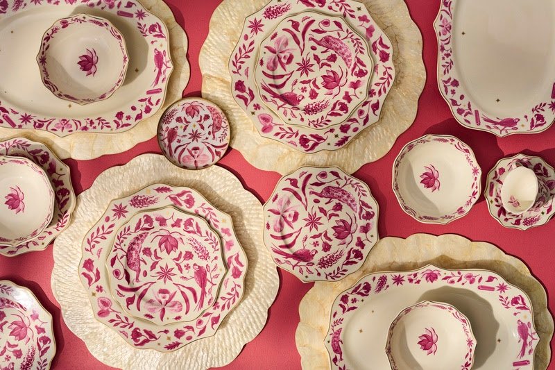 A iconografia da coleção, criada, com exclusividade pelo time de criação da Le Lis Casa, entrelaça símbolos característicos da cultura indiana, como a flor-de-lótus e a flor de sândalo, com elementos da fauna e flora brasileiras, como a arara e a orquídea-catleia. As constelações Cruzeiro do Sul e Três Marias conectam céus distantes, enquanto a paleta em rosa queimado e ouro evoca o calor das especiarias e a energia espiritual das divindades indianas.