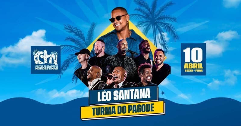 O swing baiano e o pagode paulistano se encontram no Centro de Tradições Nordestinas (CTN) para uma grande festa. O cantor Léo Santana e o grupo Turma do Pagode realizam shows no dia 10 de abril no tradicional espaço de eventos da zona norte de São Paulo, a partir das 20h e com ingressos disponíveis na Ticket360. Conhecido como o “GG”, Léo Santana é um dos cantores de maior sucesso do pagode baiano. Dono de hits como “Zona de Perigo”, “Contatinho”, “Santinha” e “Posturado e Calmo”, Léo promete um show cheio de energia e grandes momentos para o público.